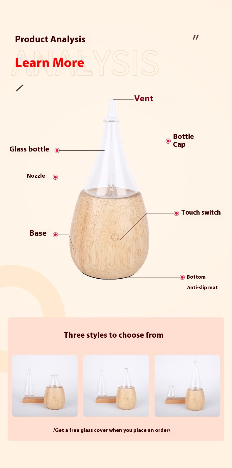 Solid Wood Aromatherapy Instrument Glass Pure Essential Oil Aroma Diffuser